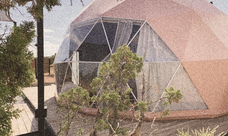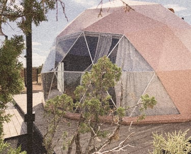 Sleep under the stars in this secluded geodesic dome nestled among juniper trees—just outside the Grand Canyon. Enjoy Milky Way views, visits from elk, and total serenity. Inside: a cozy wood-burning stove, steam shower cabin, kitchenette, and a panoramic window that brings nature right in and unforgettable vibes.